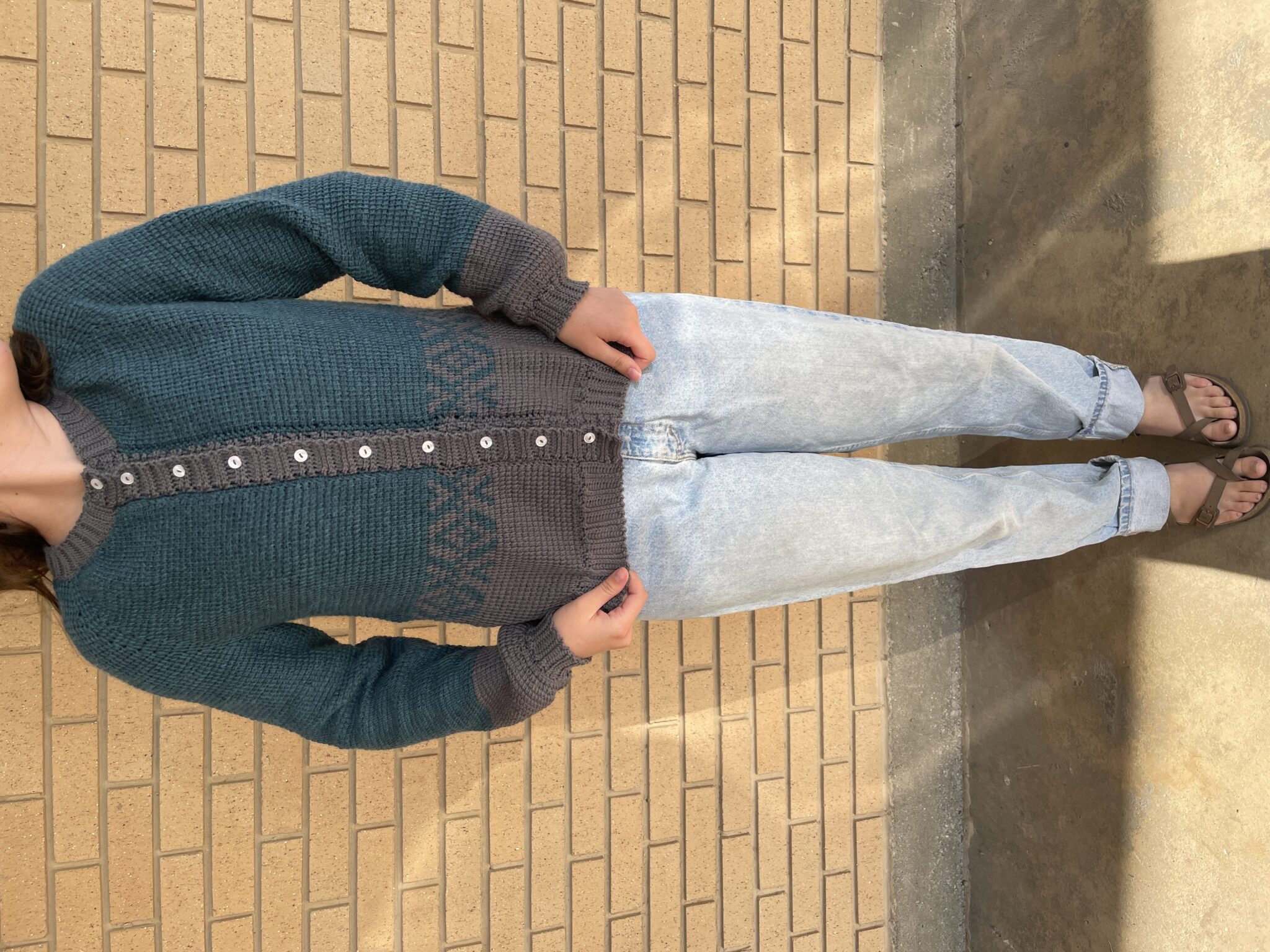 I loved this pattern! And I love wearing my mosaic cardigan around. People keep telling me they think I bought it, which is the highest compliment! I did do the hip length version, so I used some of the extra patterns that were available.