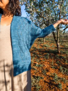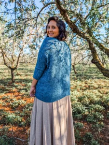 This spring cardigan captures that feeling in yarn form: light yet cozy, relaxed yet flattering. The easy drape, soft batwing sleeves, and flowing lace create a piece that feels effortless to wear and satisfying to make. Heyday is an invitation to slow down, notice the beauty in the details, and enjoy your own creative moment in the sun.