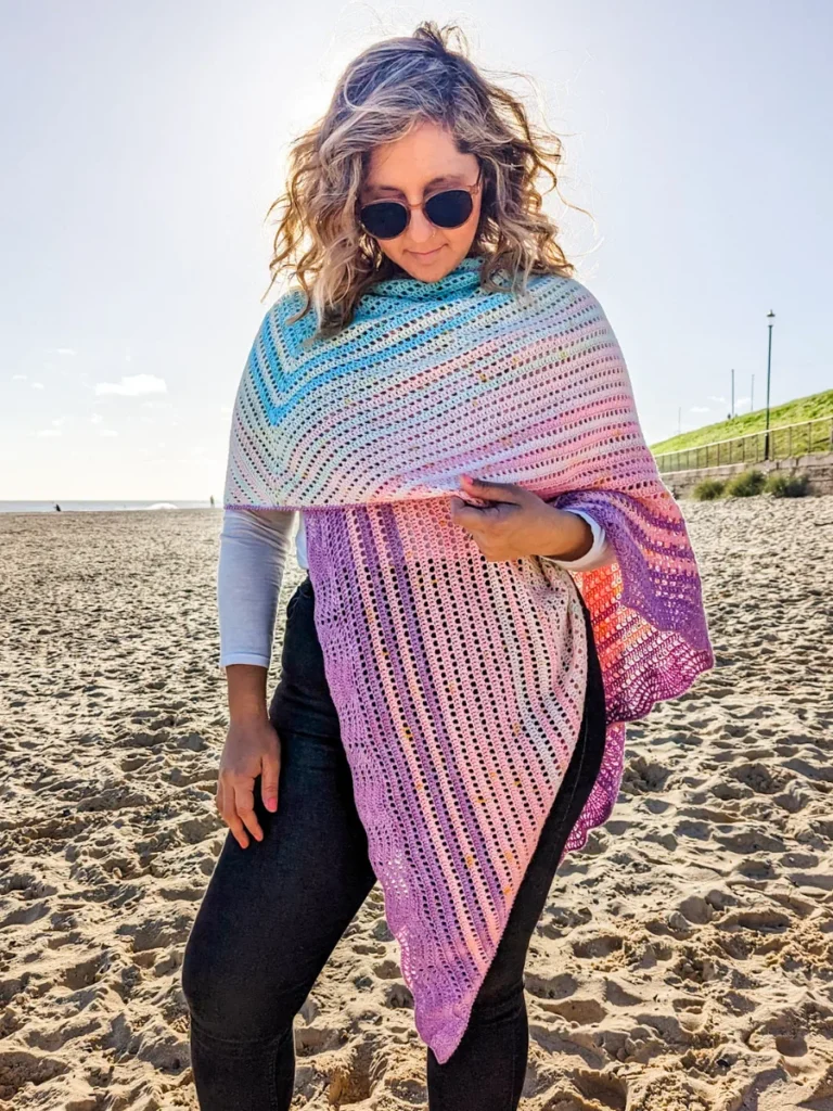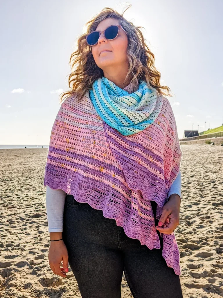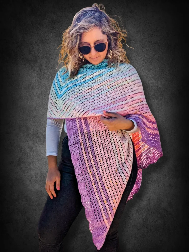 The Astrantia Shawl was named after the lovely, colorful flowers that bloom in spring. They come in all sorts of colors, including stripes with a lovely hue effect, making them the perfect namesake for this shawl. Astrantia, the shawl, is a wide shawl that can be made as a scarf or wider. Its shape is easy to wear around the shoulders and neck, and the way the colors transition creates stripes that produce an effective fade effect. With its easy construction and meditative stitch pattern, it is a very enjoyable project. Astrantia will definitely brighten your wardrobe while keeping you nice and cozy!