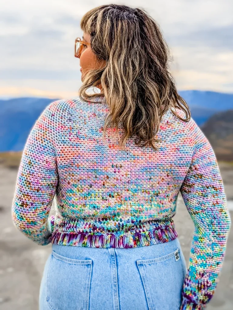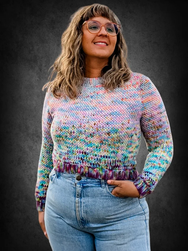 The Confetti Pullover is a celebration of childhood and color. It features a fading of color that resemble confetti falling.