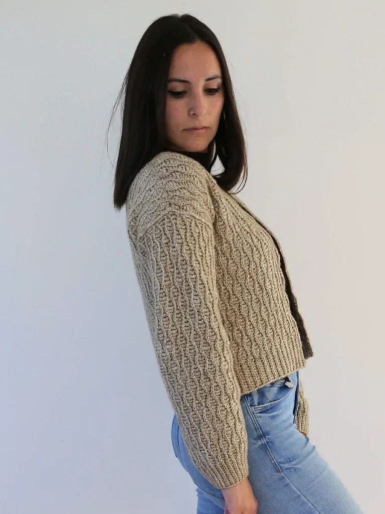 The Ola Cardi it’s simple but one of a kind. It’s comfy but chic. It’s your go-to cardigan that will give any outfit that special touch. Ola sports a very interesting stitch pattern that is easy to memorize and fun to make and wear! The pattern is written in US terms and it’s ideal for intermediate crocheters.