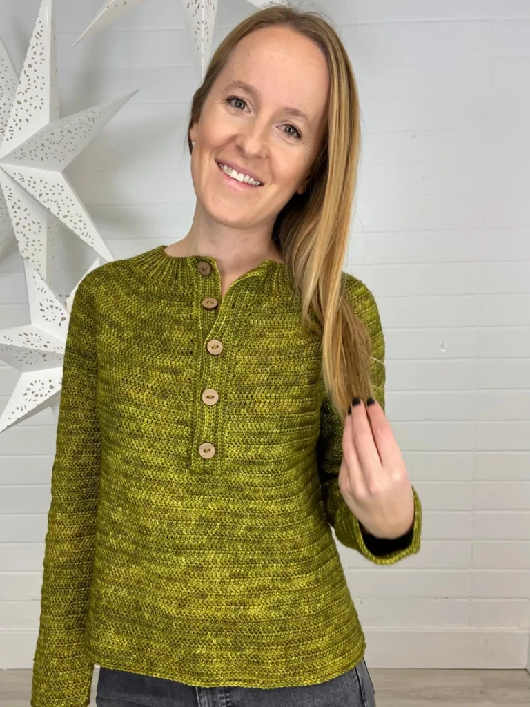 Olive is an everyday staple with a round yoke that uses short rows for that PERFECT fit around shoulder and neck. Olive features a buttons placket at the top that looks modern and makes it super wearable. The simplicity of Olive is what makes it stand out – with simple stitches that can make your yarn shine, get crazy with color or stick to a color!