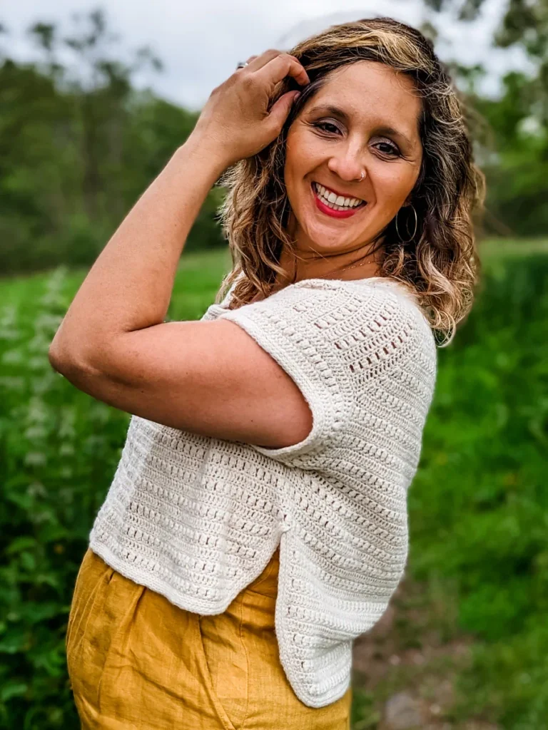 Vesuvius is the sister pattern to the Etna Tee. A collection inspired by beautiful Italian landscapes and the roughness of terrain around the volcanic majesties that their namesakes are. Vesuvius is made top-down with a drop-shoulder construction and has perfectly fitted shoulders to eliminate excess fabric around the underarms. The Tee features a textured and airy stitch, which is perfect for summer garments, a wide over-sized fit and a split high-low hem; all finished with an elegant edging. Best part? Vesuvius is truly size inclusive with a design that ensures that the shoulder drops roughly in the same spot on all makers, regardless of their size. The details in this Tee will have you reaching for it time and time again!
