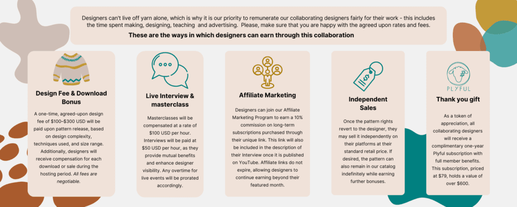 At Plyful, we recognize that talent and knowledge can come from anywhere, and we would love to give all crochet designers, no matter their experience or social media reach, an opportunity to showcase their work on our platform and to be fairly remunerated for it.