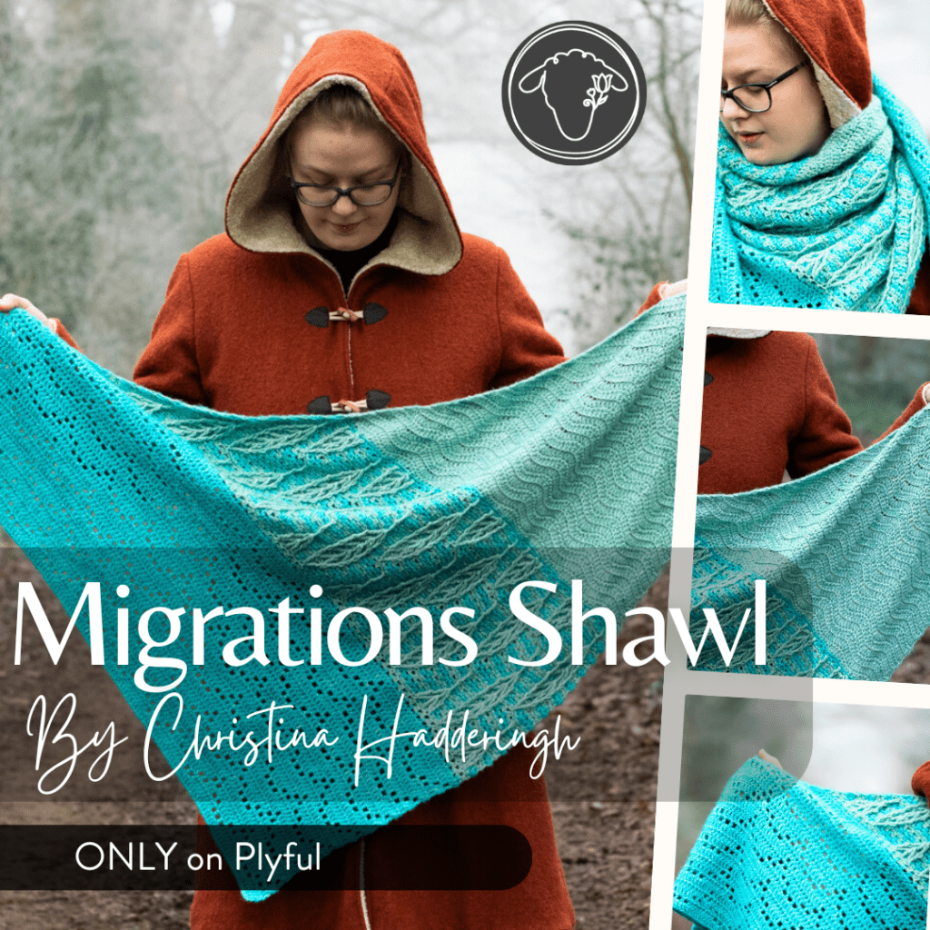 Our featured Design for the month of April is the Migrations Shawl – a lovely piece inspired by the book Migrations by Charlotte McConaghy, this shawl will truly take you on a creative journey!