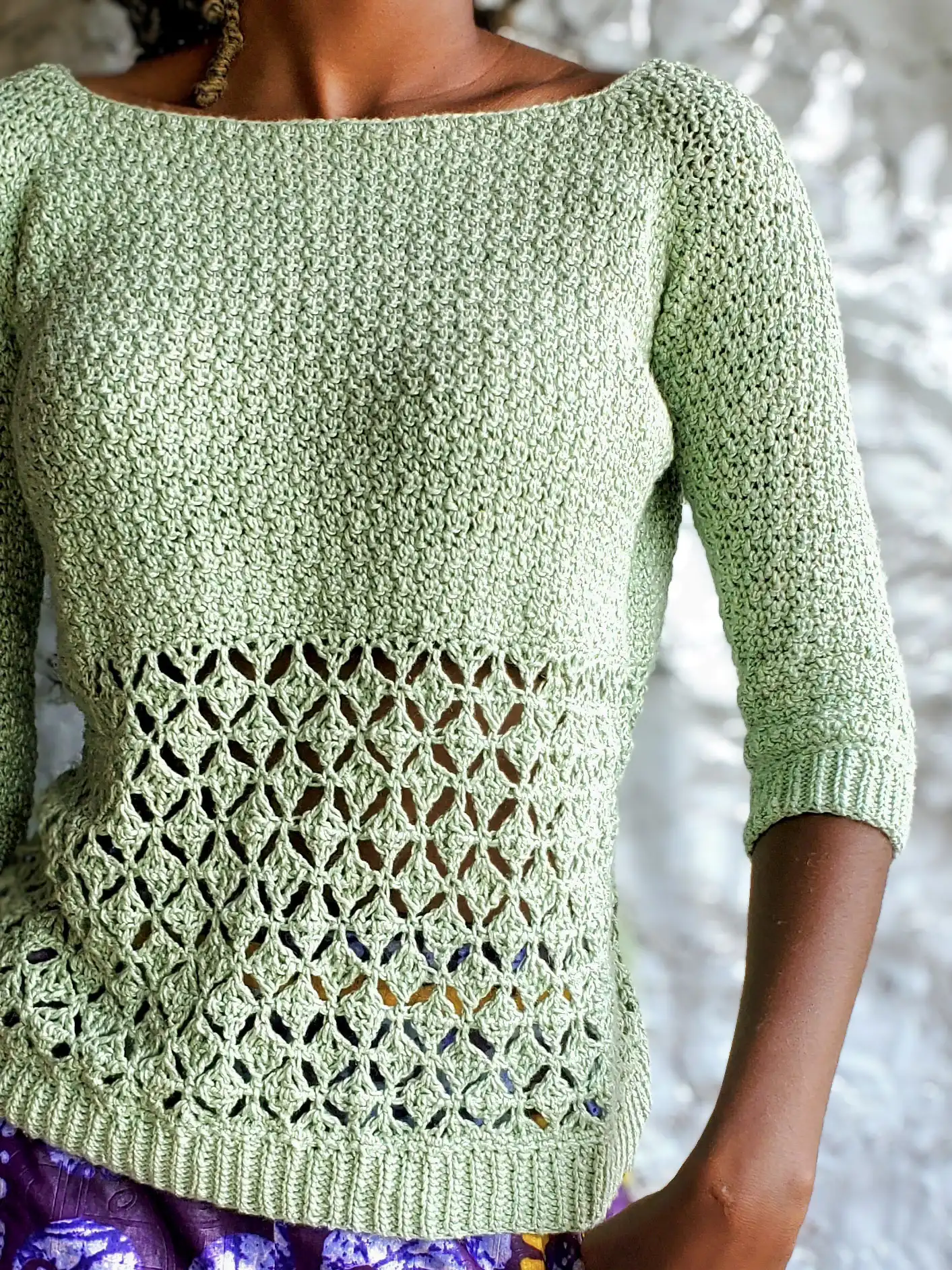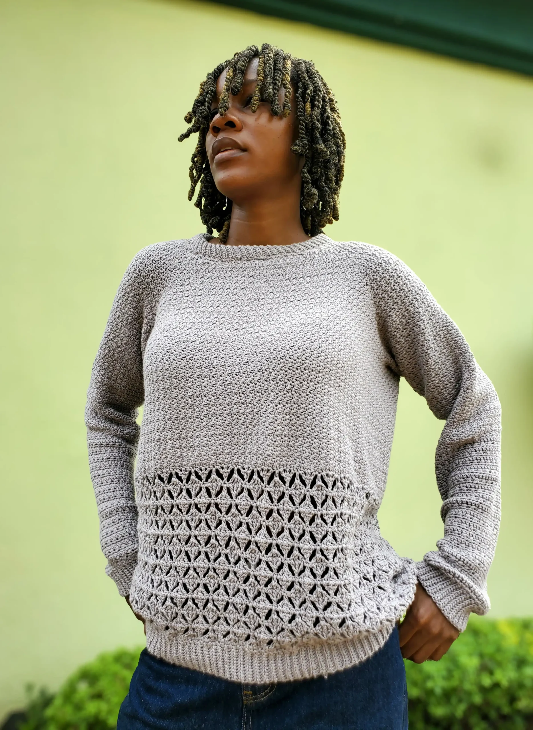 The Lacewood Pullover is all about versatility and texture. Worked in a simple top-down construction, this design features a delicate lace panel that adds breathability and visual interest to the classic raglan silhouette. Choose your own adventure with two customizable versions — opt for a solid back or add a touch of retro flair with granny squares, and decide whether you’d like a sleek ribbed neckline or a clean, minimalist edge, with or without short rows at the back for that perfect fit. Whichever route you take, you’ll end up with a light, comfortable pullover that’s perfect for layering or showing off your stitchwork in style.