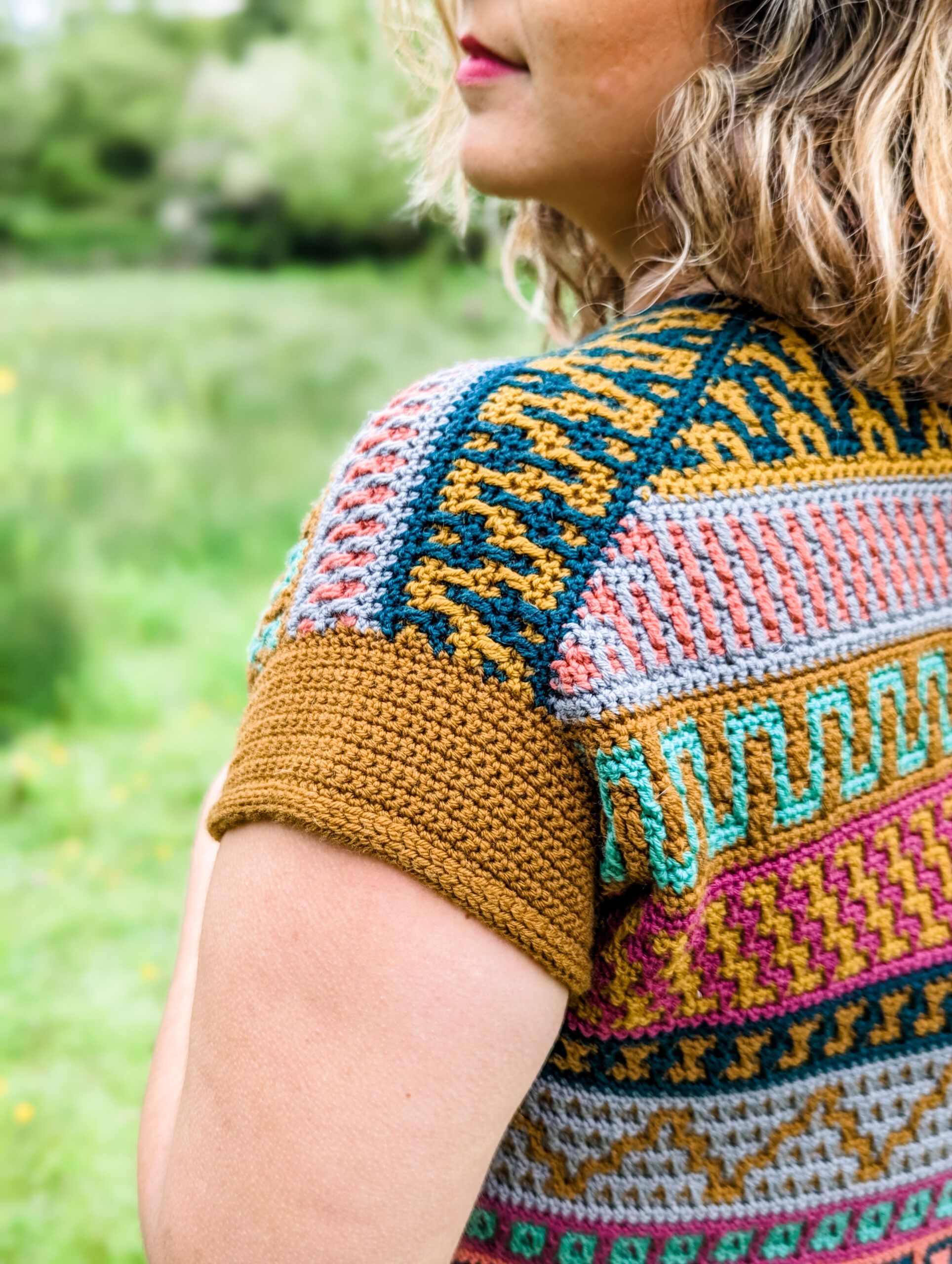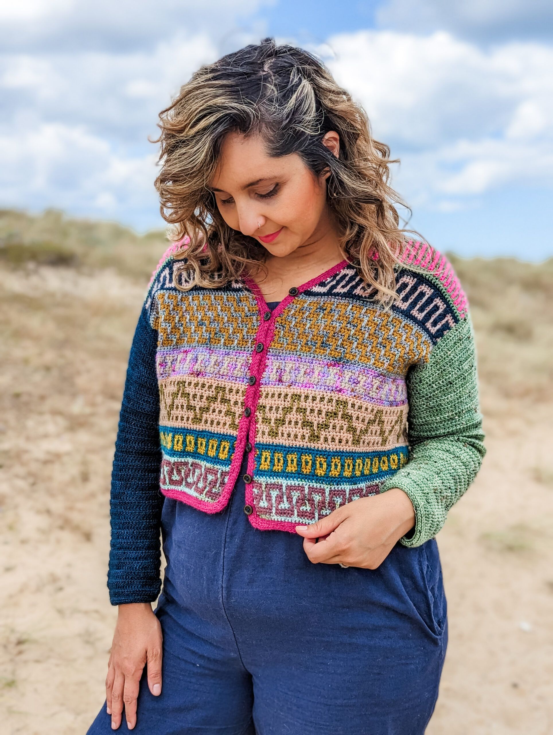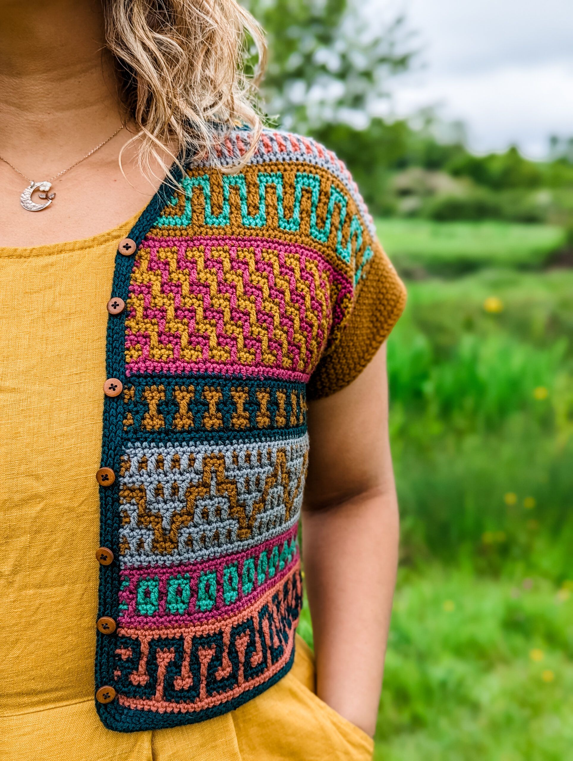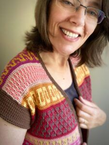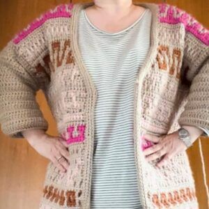 The Mosaic Cardigan is a celebration of nature at its best – inspired by flower meadows that lie dormant in winter only to burst out in color with the arrival of Spring. With ALL of the colors and fun mosaic graphics, it’s the perfect garment to use up yarn in your stash, to experiment and have lots of fun with color. It is worked top-down completely seamlessly with a slight drop-shoulder and tapered sleeves. The body follows Standard Mosaic Crochet charts, and the pattern comes with complete video tutorials for learning all of the necessary techniques. The Mosaic Cardi is the sister pattern to the Mosaic Jumper with a few differences; the Cardigan calls for Fingering weight yarn and it uses Standard Mosaic Crochet worked flat, while the pullover calls for Sport weight yarn and is made using Single-Row Mosaic Crochet in the round. Use the coloring page at the end to plan your color scheme!