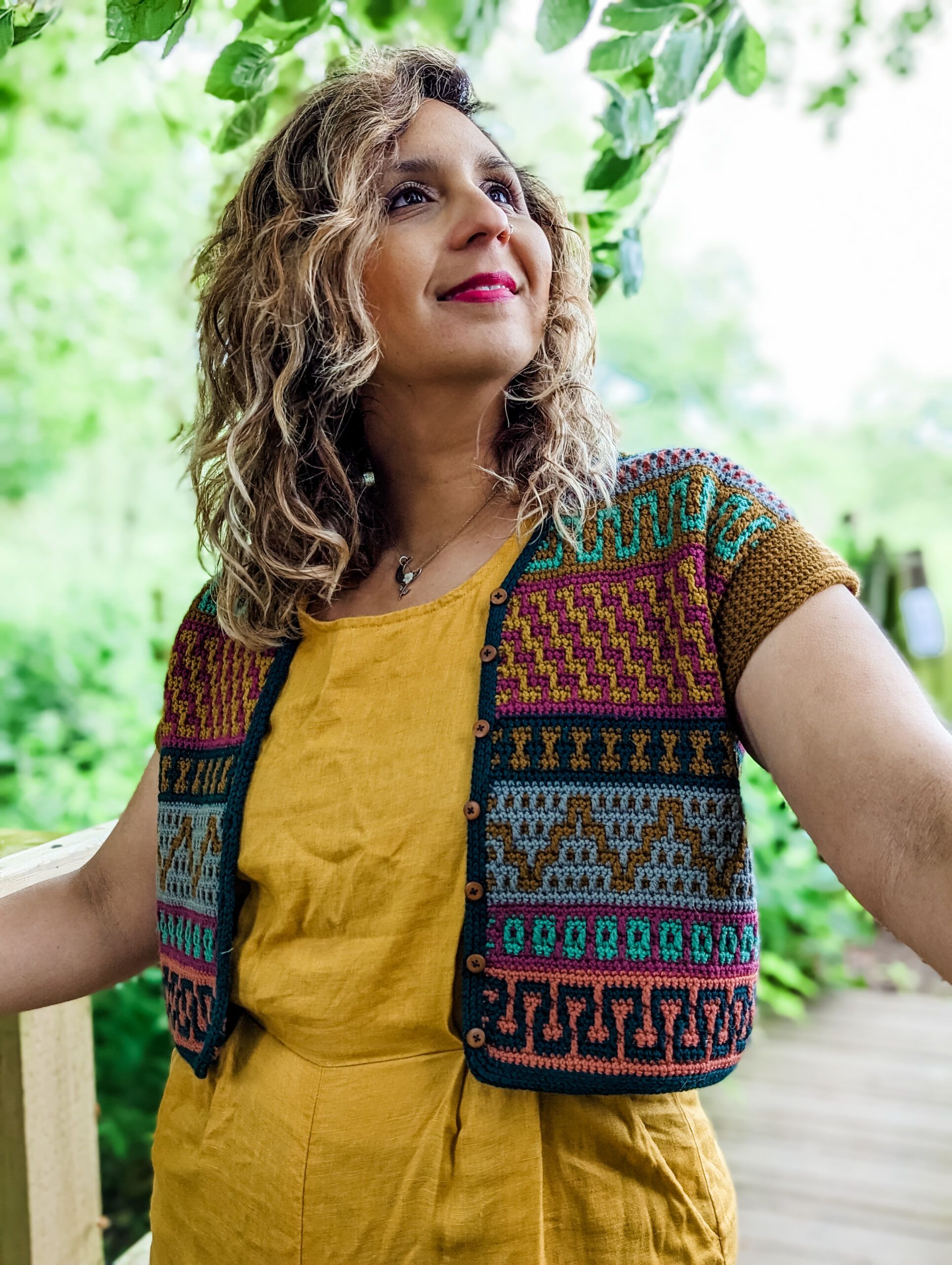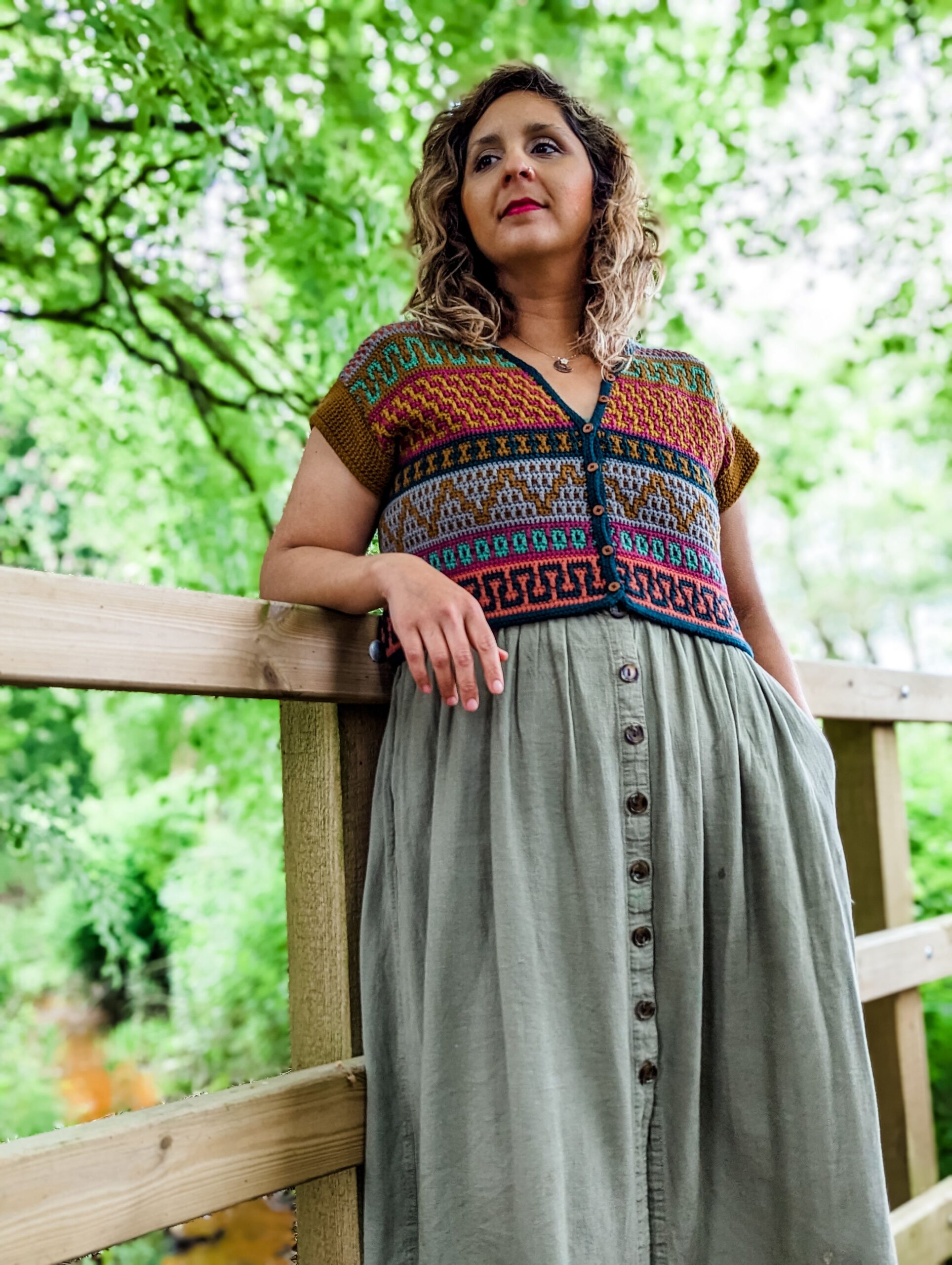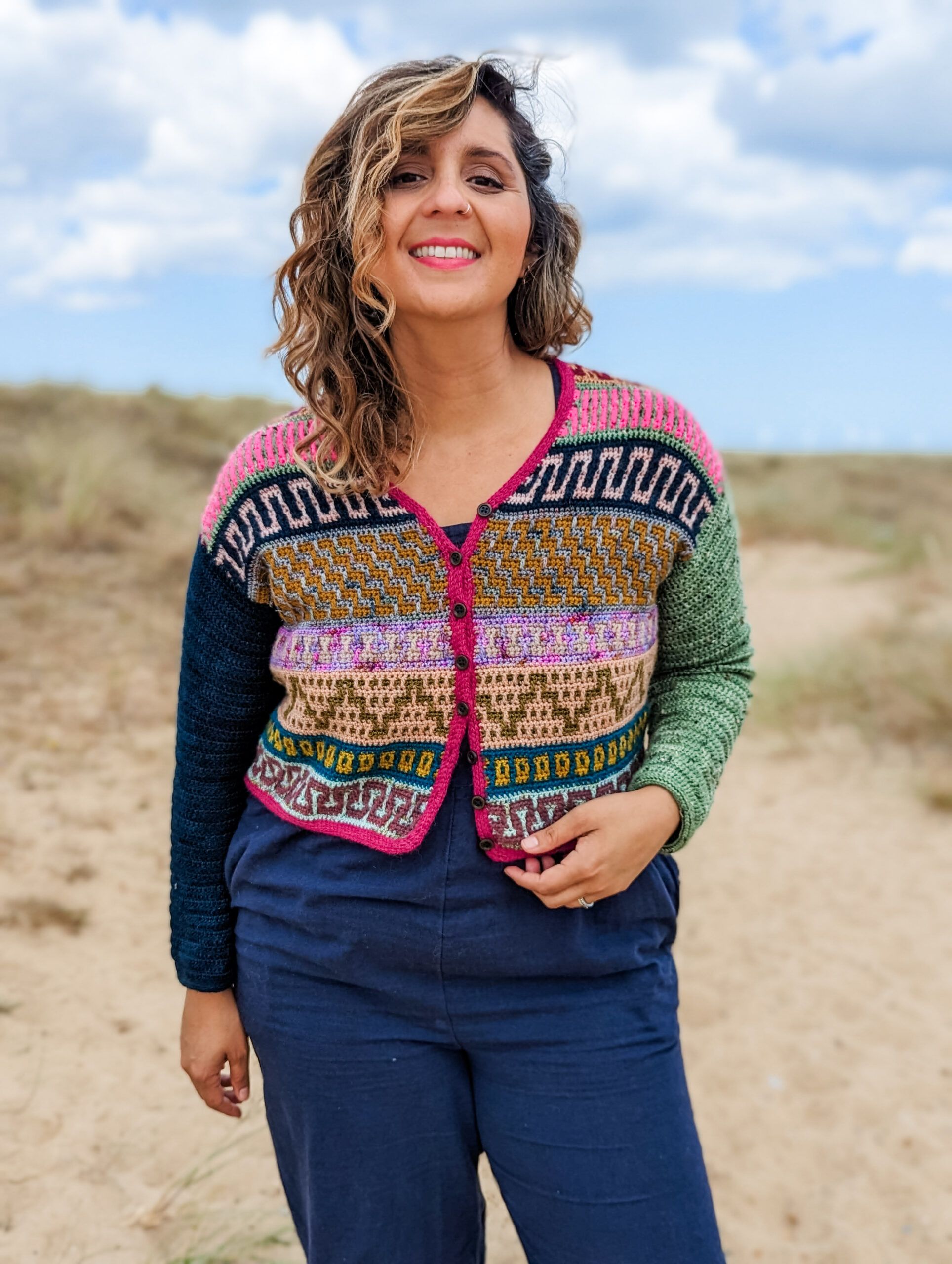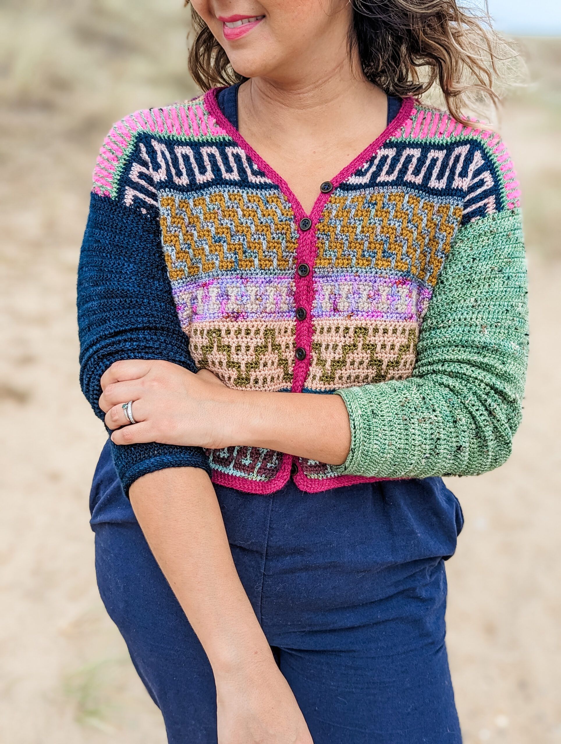 The Mosaic Cardigan is a celebration of nature at its best – inspired by flower meadows that lie dormant in winter only to burst out in color with the arrival of Spring. With ALL of the colors and fun mosaic graphics, it’s the perfect garment to use up yarn in your stash, to experiment and have lots of fun with color. It is worked top-down completely seamlessly with a slight drop-shoulder and tapered sleeves. The body follows Standard Mosaic Crochet charts, and the pattern comes with complete video tutorials for learning all of the necessary techniques. The Mosaic Cardi is the sister pattern to the Mosaic Jumper with a few differences; the Cardigan calls for Fingering weight yarn and it uses Standard Mosaic Crochet worked flat, while the pullover calls for Sport weight yarn and is made using Single-Row Mosaic Crochet in the round. Use the coloring page at the end to plan your color scheme!